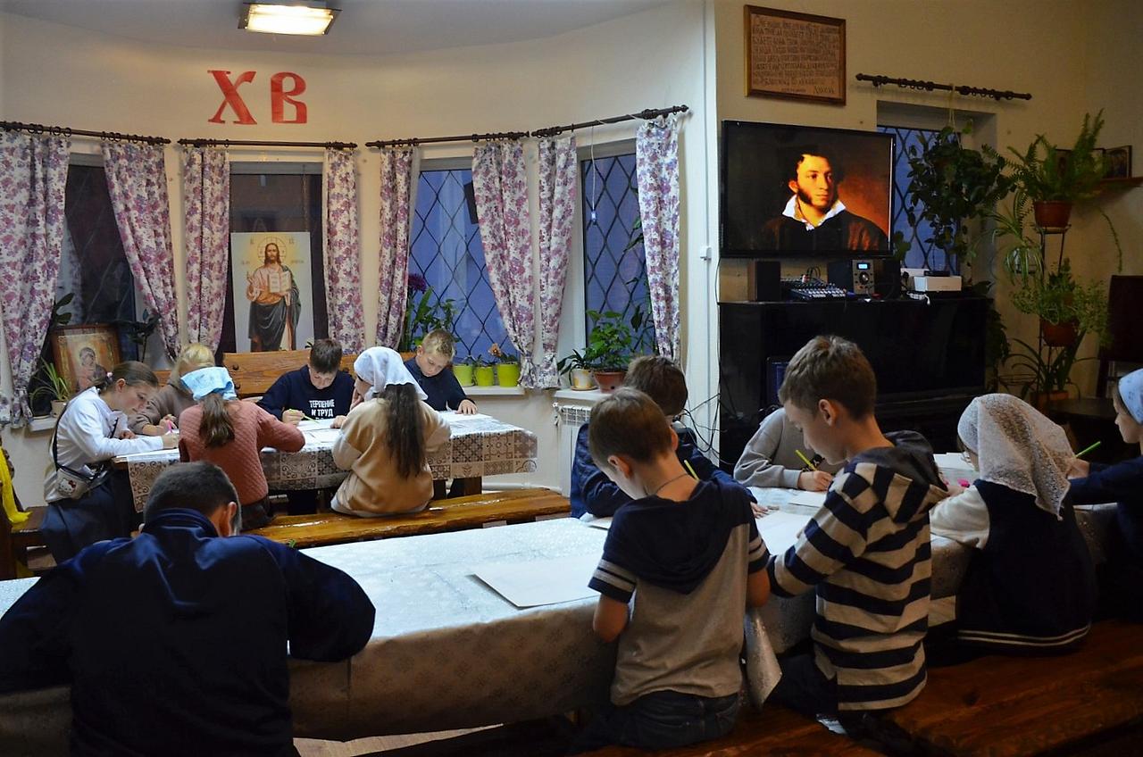 Ребята погрузились в атмосферу творчества великого поэта и, по окончании беседы, приступили к рисованию карандашом набросков картин. Учащиеся закончат свои работы самостоятельно и в конце сентября в Воскресной школе состоится выставка рисунков, лучшие из которых будут отправлены на викариатский этап конкурса «Красота Божьего мира».