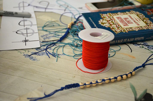 В благодарность своим папам дети изготовили на занятиях по творчеству закладки для книг методом плетения макраме.