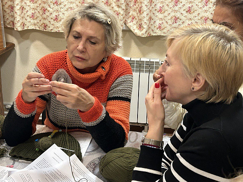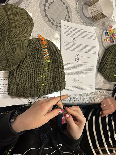 Провела мастер-класс опытный мастер и прихожанка храма Священномученика Ермогена в Зюзине Новожилова Надежда Викторовна. Предварительно был собран материал - закуплена пряжа и крючки для вязания оптимальной модели шапок, распечатаны пошаговые инструкции с описанием работы. Надежда Викторовна подробно объясняла каждый этап вязания, отвечала на вопросы. Более опытные вязальщицы помогали начинающим. Большинство участников мастер-класса освоили основные приемы вязания, разобрали схему вязания и по окончании занятия смогли взять пряжу для самостоятельного завершения работы дома.
