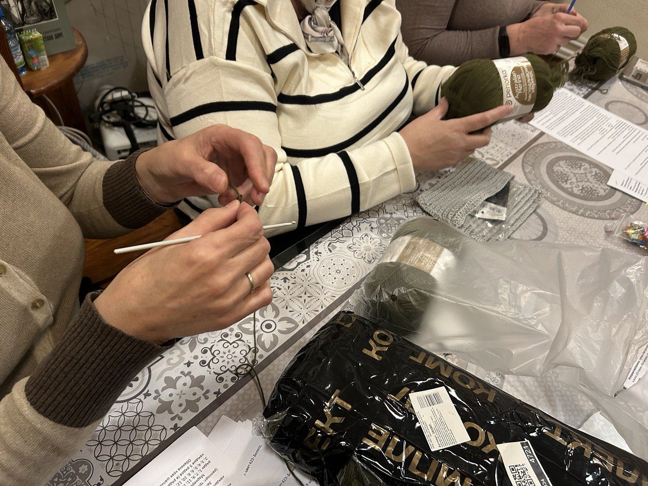 По просьбе бойцов подразделений, куда регулярно отправляется гуманитарная помощь из храма, инициативной группой прихожан под руководством директора Воскресной школы Гришиной Екатерины Вадимовны был организован мастер-класс по вязанию крючком шапок-подшлемников.