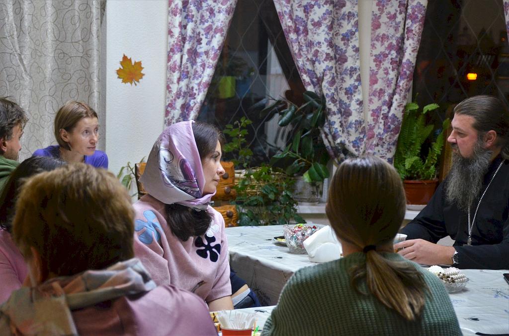 Учителя и родители со вниманием слушали цитаты из миссионерских писем великих святителей, сопоставляли проблемы, поднимаемые в них, с современными проблемами. Гости задавали настоятелю вопросы, затрагивающие личную и семейную жизнь, и каждый смог получить ободрение и утешение в ответах священника.