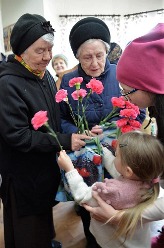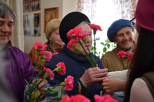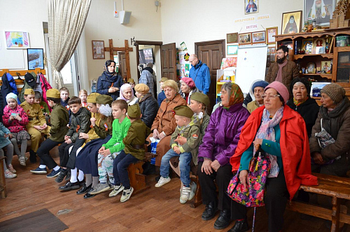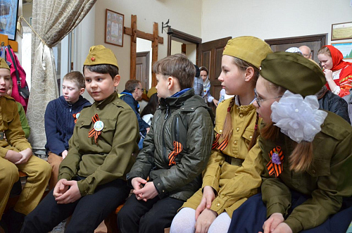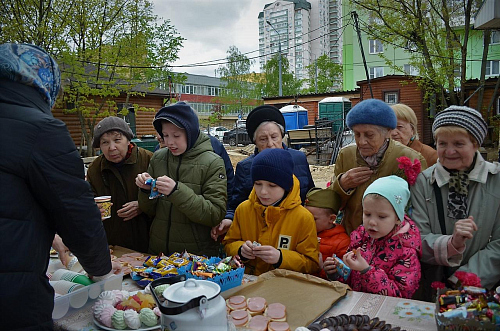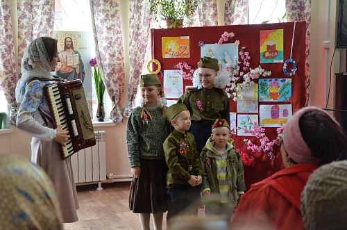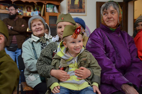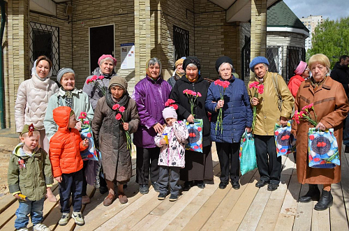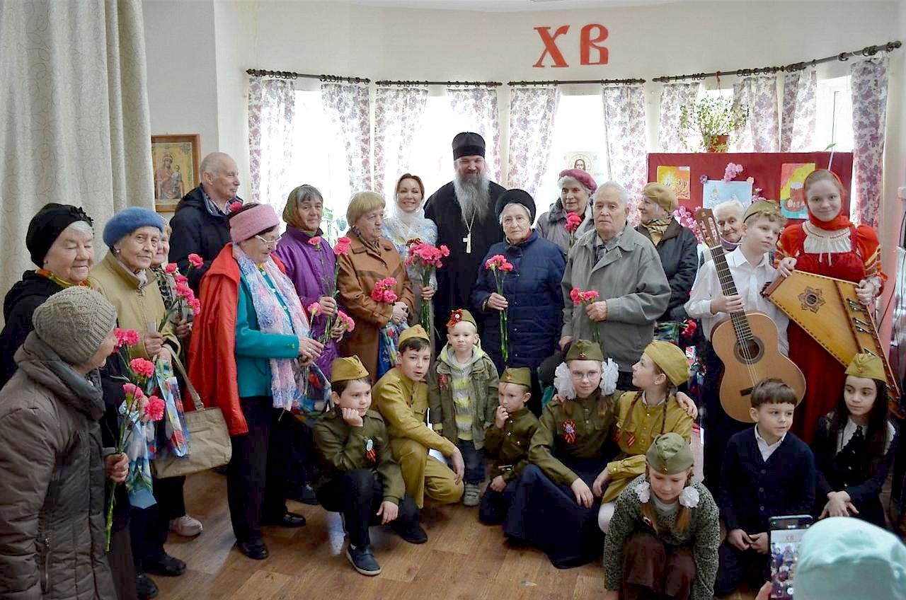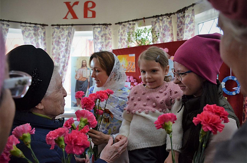 Дорогим гостям праздничного концерта дети вручили цветы и подарки, настоятель храма иерей Иоанн Омелянчук поздравил всех присутствующих со Светлым Праздником Пасхи и с наступающим Днем Победы, поблагодарил ветеранов за их труды, за совместную встречу, пожелал крепкого здоровья, участников и организаторов концерта - за подаренную радость, после чего пригласил всех к совместному чаепитию. Дети и взрослые, за чаем с бутербродами и сладостями, смогли пообщаться и поделиться впечатлениями от концерта. Завершилась встреча экскурсией почетных гостей в строящийся храм в честь Священномученика Ермогена, а также в крестильный придел храма в честь Преподобного Сергия Радонежского, где гости смогли увидеть новое убранство храмов и порадоваться произошедшим изменениям.