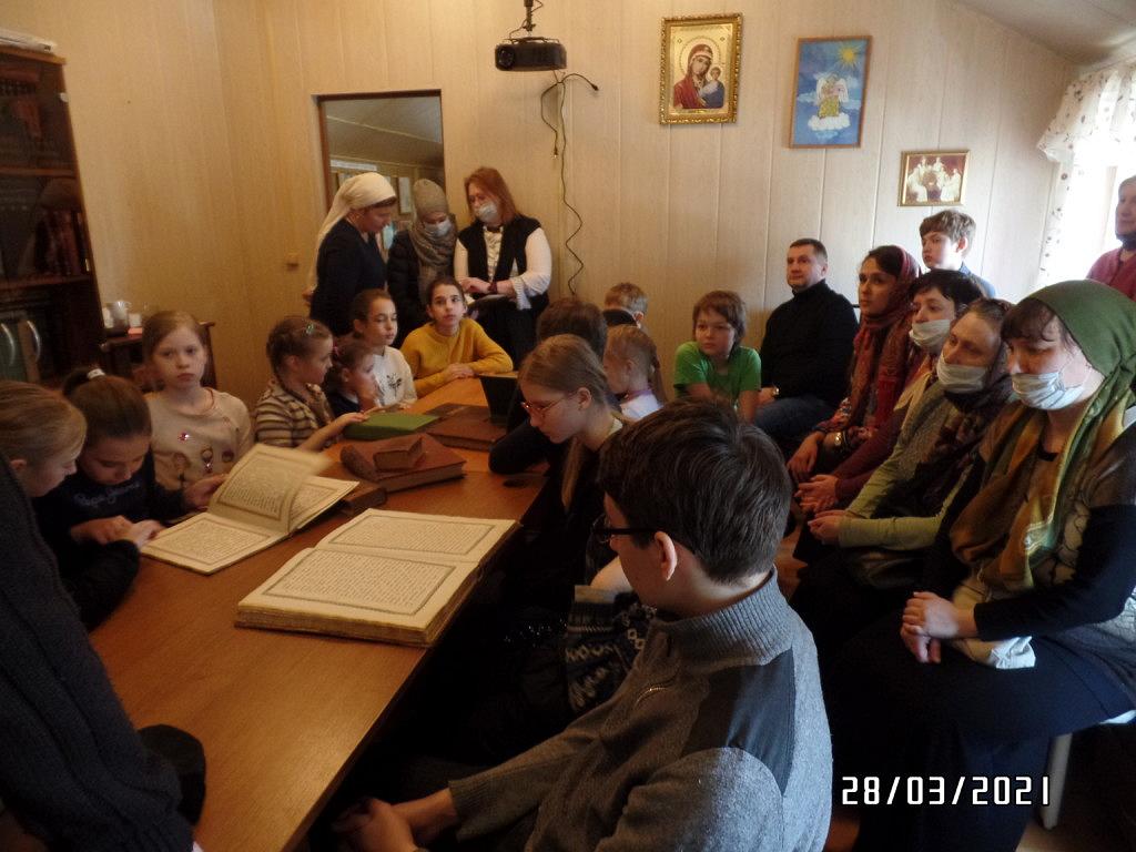 Настоятель храма иерей Максим Глухих познакомил слушателей с редкими старопечатными богослужебными и церковными изданиями. Среди них был канонник1659 г. , а также патерик и Житие св. преподобного Антония, игумена Киево-Печерского. Свой рассказ настоятель сопровождал показом старинных книг, которые все могли подержать в руках и посмотреть.