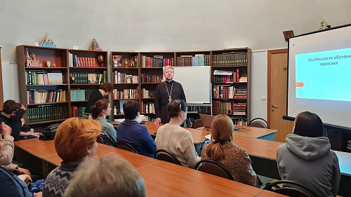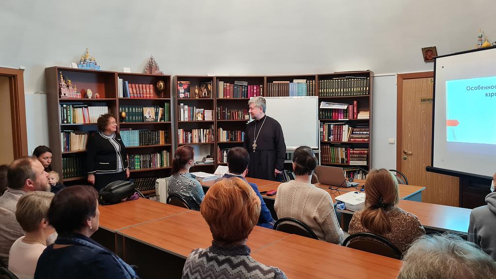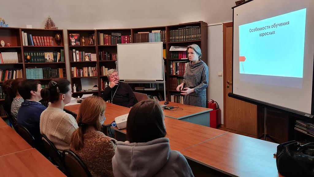 Затем слово было предоставлено начальнику Учебно-методического управления ПСТГУ, доценту кафедры Новых технологий в гуманитарном образовании Меланиной Татьяне Владимировне. Она рассказала о характерных особенностях обучения взрослых и базирующихся на них принципах построения учебного процесса. Известные принципы обучения взрослых сопровождались комментариями о применимости их в богословском образовании взрослых и иллюстрировались примерами из педагогической практики и исследований кафедры Новых технологий в гуманитарном образовании ПСТГУ.