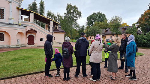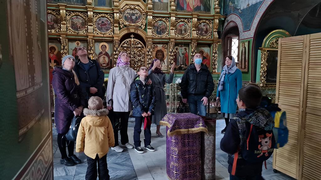 После окончания занятий преподаватель курса «История христианского искусства» Орлова И. Б. провела в храме и на подворье лекцию об истории, иконографии и убранстве храма для слушателей первого года обучения, детей первого класса и их родителей.