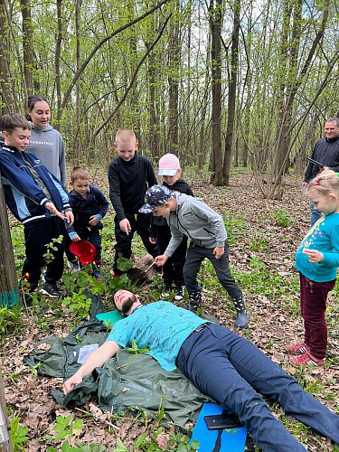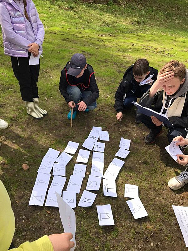 Дети были разделены на две команды. Каждая команда проходила пять точек на местности, где выполняла предложенные задания на православную тематику. Шестую точку команды проходили совместно.