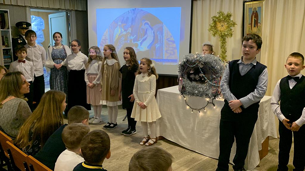 Центром действия стал Рождественский вертеп: скромная пещера, в которой родился Младенец Христос. Каждый участник спектакля озвучивал библейского персонажа из числа участников событий Рождества. Во время спектакля дети исполнили несколько Рождественских песнопений в фольклорном стиле и Рождественские колядки. ЕгорЧухлеб исполнил на фортепьянокомпозицию «Странники» из Рождественской кантаты Ариэля Рамиресао путешествии Девы Марии через пустыню и рождении Иисуса Христа. В конце дети исполнили тропарь праздника Рождества Христова.