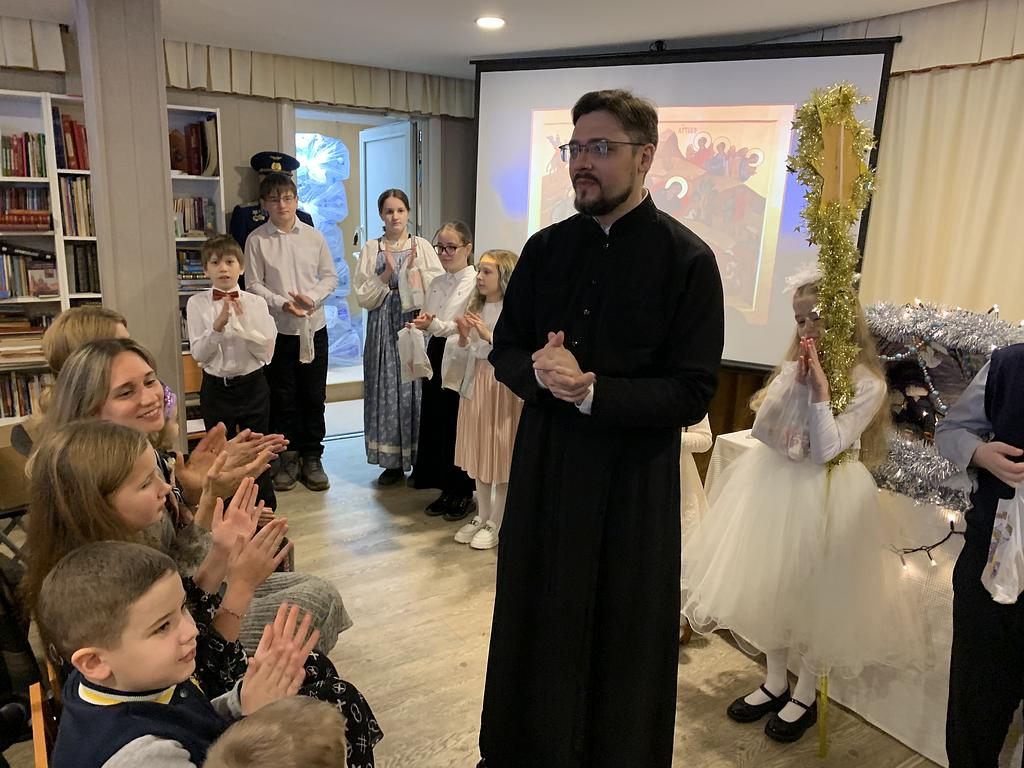 После завершения представления настоятель храма иерей Илия Власов тепло поблагодарил руководителя Аллу Викторовну и учащихся Воскресной школы за подготовку и проведение интересного и яркого спектакля, а также вручил всем детям традиционные рождественские подарки.