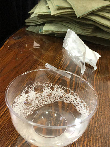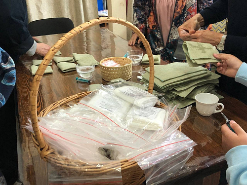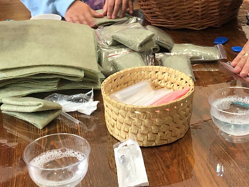 Наборы с необходимыми ингредиентами для сухого душа были скомплектованы по индивидуальным пакетам и в дальнейшем отправятся на фронт, чтобы послужить бойцам средством гигиены, которым можно воспользоваться в походных условиях.