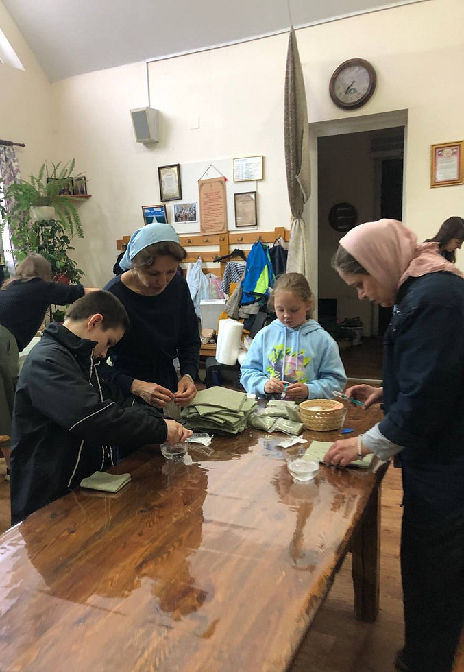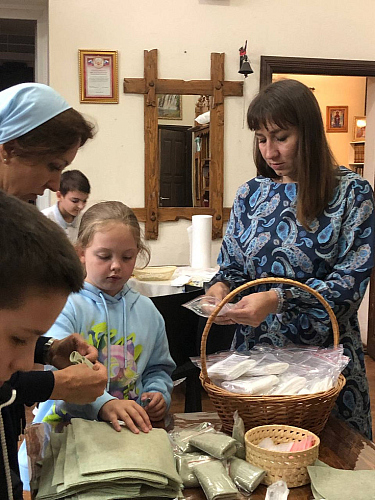 Участники встречи - дети и взрослые - сформировали и упаковали около 150 комплектов; в дальнейшем эта работа продолжится на приходе, в течение всего летнего периода.