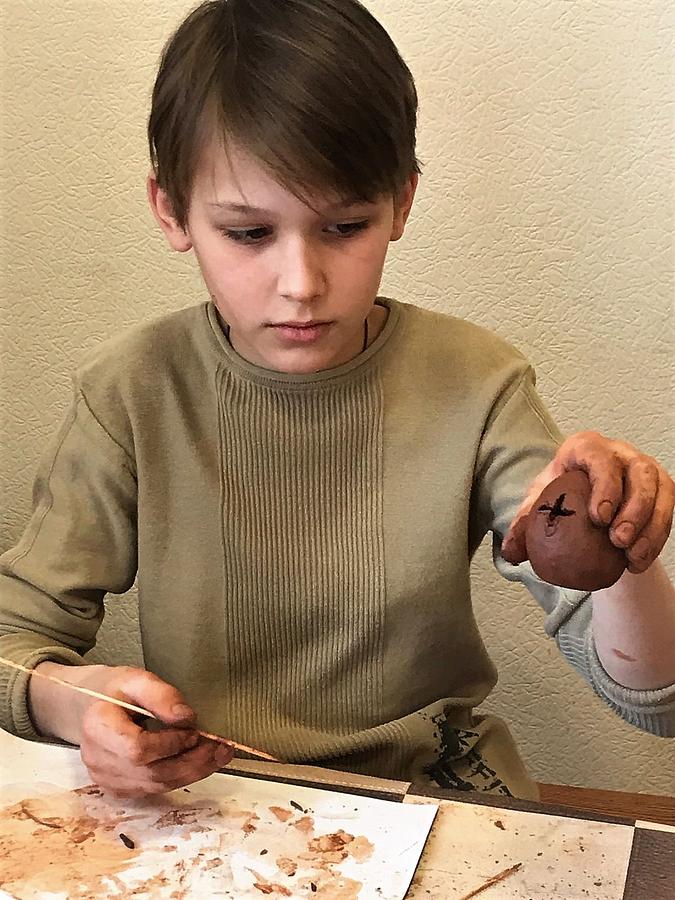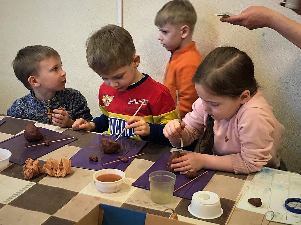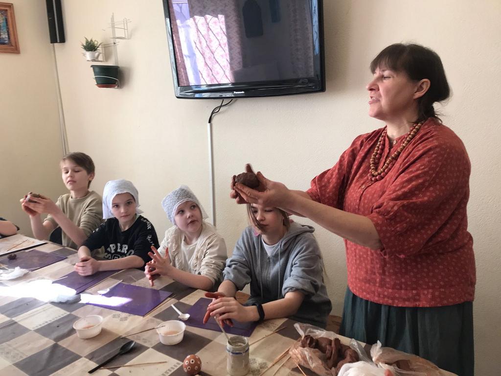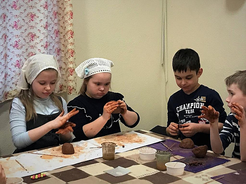 18 и 19 марта 2023 года в Воскресной школе "Исток" храма священномученика Ермогена, Патриарха Московского и всея Руси, чудотворца, в Зюзине, для всех учащихся прошли мастер-классы по лепке из красной глины и росписи пасхальных колокольчиков и пасхальных яиц.
