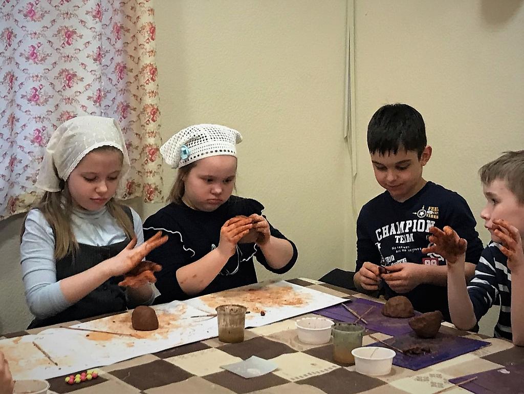 Дети с увлечением погрузились в процесс создания из бесформенного куска глины свои поделки, делая глину «живой». Творчество проходило в сопровождении захватывающих историй мастера - сравнения, аллегории, истории и выразительные примеры, которые в процессе работы помогли ребятам точнее понять технику лепки, понять приёмы создания правильной формы изделий.