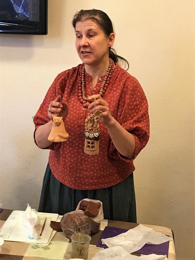 Провела мастер-класс Татьяна Вячеславовна Ефимова - художник-скульптор, арт-директор Творческого Центра Культуры и Искусства "Артмосфера", автор-создатель Московской Преображенской народной игрушки из керамики.