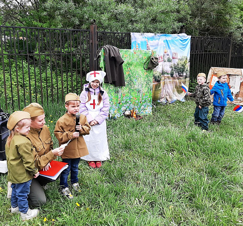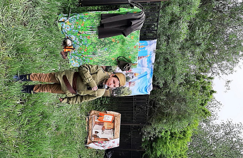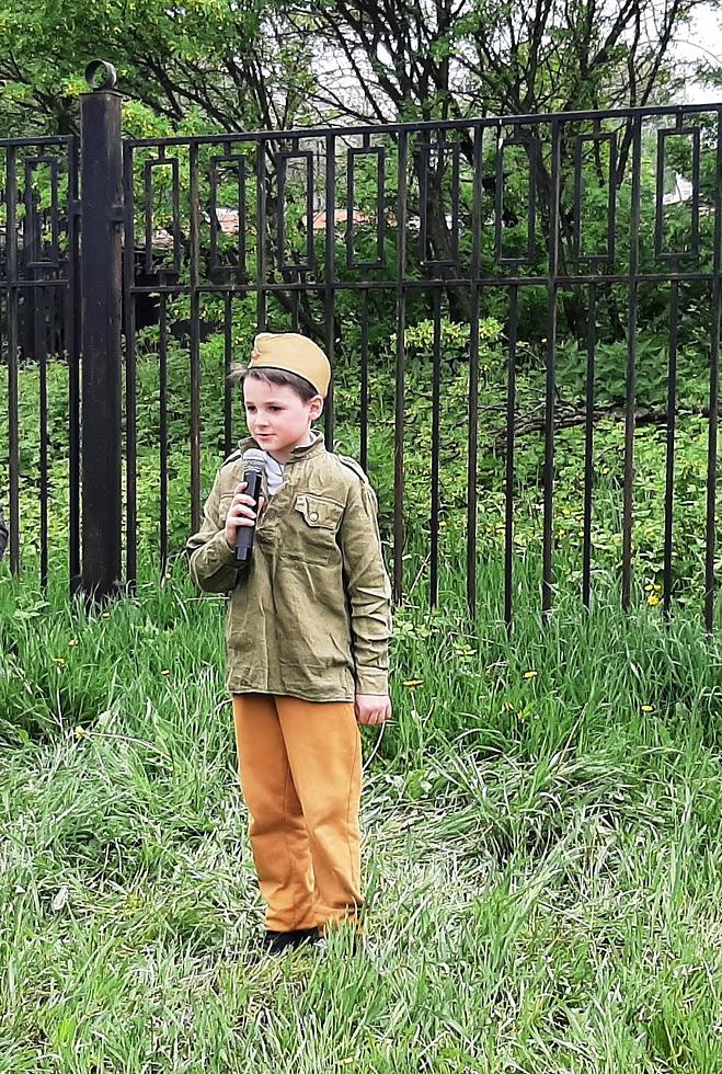 В исполнении детей и родителей прозвучали стихи и песни военных лет такие как "Катюша", " Москвичи", "Журавли" и др. Ребята принесли портреты своих родных героев и рассказали об их подвиге.
