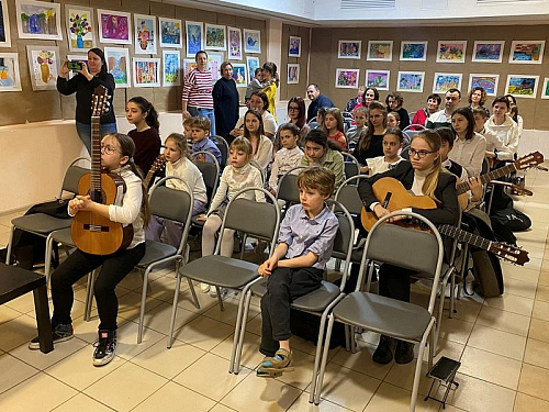 23 апреля 2023 года в актовом зале дома причта храма святого праведного воина Феодора Ушакова в Южном Бутове состоялись праздничные пасхальные мероприятия организованные Воскресной школой Патриаршего подворья: выставка детских рисунков «Весенний благозвон» студии рисования и концерт гитарной музыки.