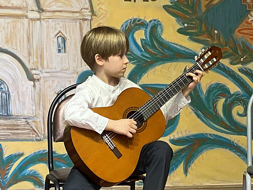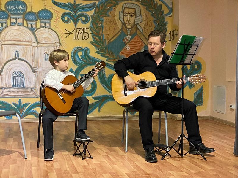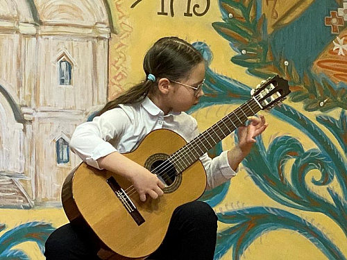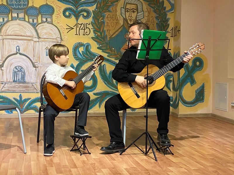 После открытия выставки состоялся концерт гитарной музыки. В Воскресной школе много лет был кружок игры на гитаре, под руководством Карпова Виктора Вячеславовича, в котором многие ребята получили первые навыки и развивали свои музыкальные способности. Выступило около десяти ребят. Их выступления сопровождались поддержкой зала и аплодисментами.