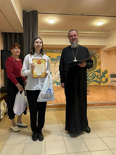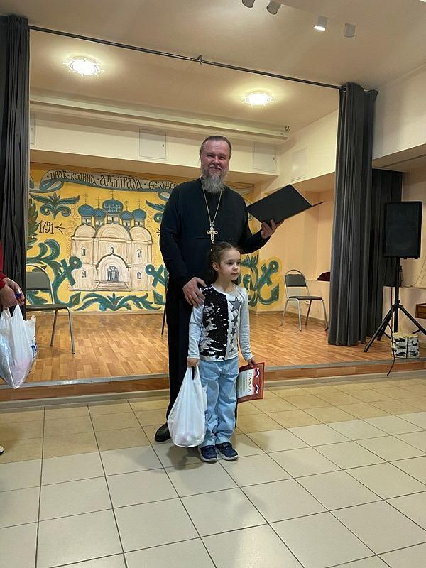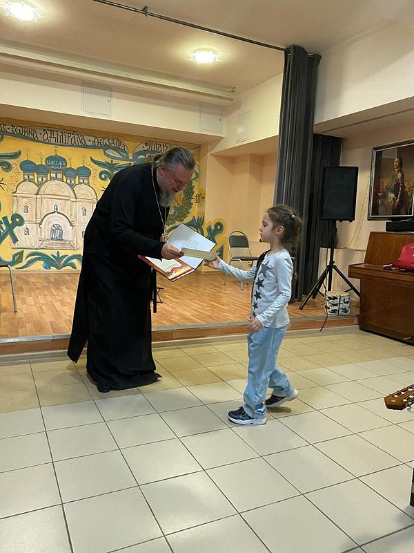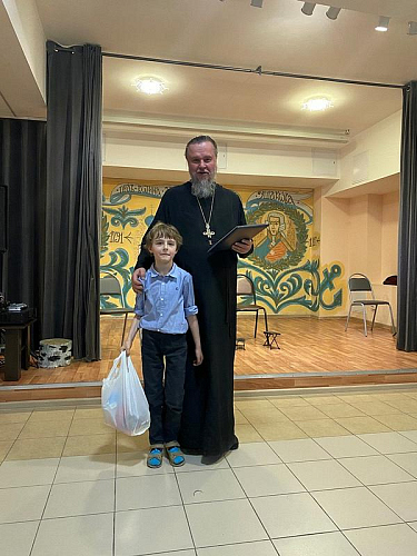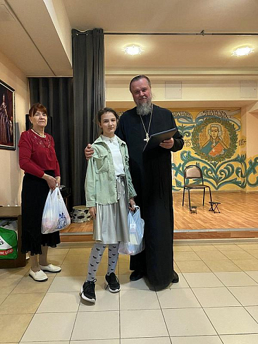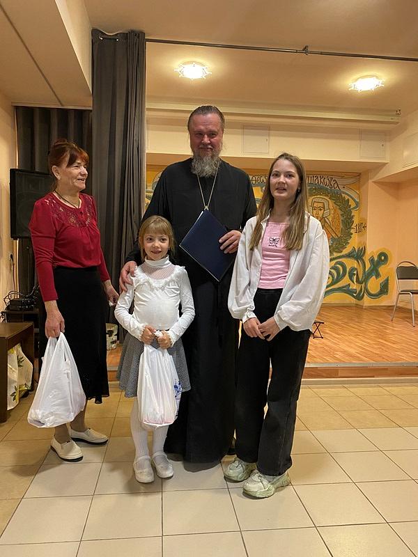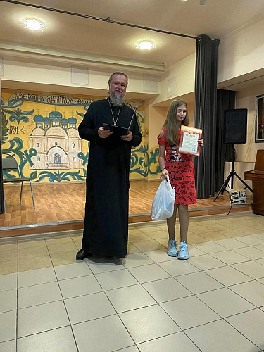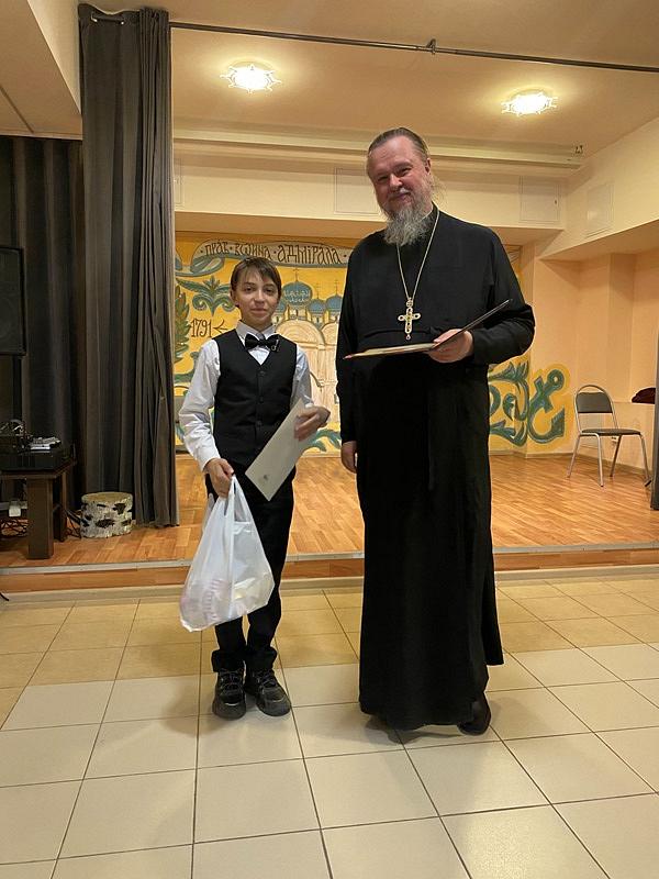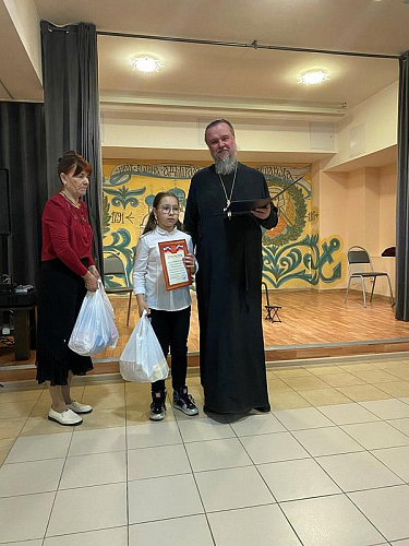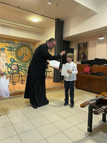 После концерта настоятель тепло поблагодарил ребят и наставников за их труд и творчество, которым в пасхальные дни они поделились и порадовали присутвующих. Далее игумен Дамиан вручил грамоты и благодарственные письма участникам концерта. Вместе с документами настоятель вручил каждому набор пасхальных угощений.