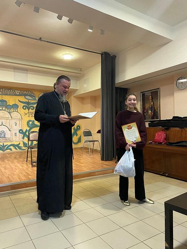 После музыкантов и художников наборы были розданы всем учащимся Воскресной школы Патриаршего подворья. Особой благодарности и признательности удостоились сами педагоги Клюкина Ирина Александровна и Карпов Виктор Вячеславович, которые много старались и занимались с ребятами.