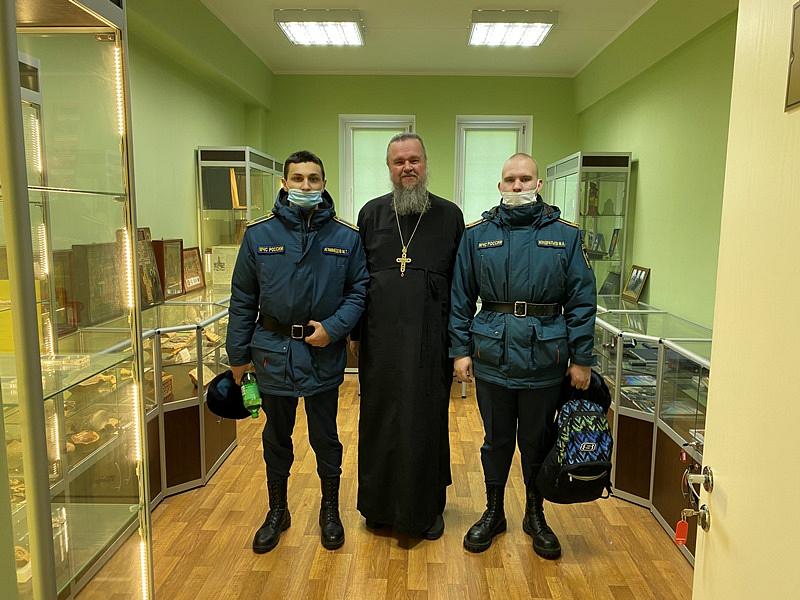 После урока студенты Колледжа вместе с настоятелем осмотрели церковно-археологический музей Подворья. Игумен Дамиан рассказал студентам о храме и церковной деятельности. Настоятель тепло поблагодарил обоих Максимов за их благородный труд и поздравил с наступающим Днем спасателя.