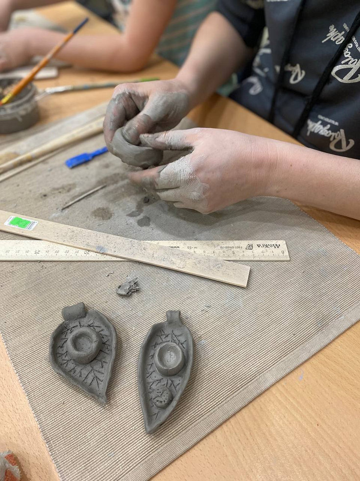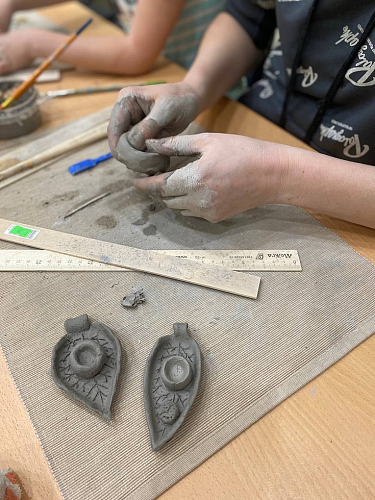 10 и 11 апреля 2024 года в Воскресной школе при храме преподобной Евфросинии, великой княгини Московской, прошли мастер-классы по изготовлению керамических изделий. Ученики школы под руководством преподавателя основ иконописи и ИЗО Дарьи Олеговны Антошко изготовили из глины декоративные изделия.