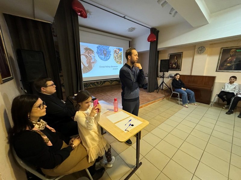 После этого учащиеся проследили как одна и та же идея, например, «ахиллесова пята», может появляться в разных формах в разные эпохи. Затем всем участникам раздали текст сказки О. Уайлда «Великан-эгоист», который прочитали вслух, а затем перешли к обсуждению. Преподаватель старался сделать так, чтобы дети могли сопоставить христианские смыслы Евангелия с героями книги.