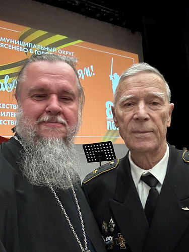 В мероприятии по приглашению Главы района Ясенево присутствовал настоятель храма святого праведного воина Феодора Ушакова в Южном Бутове игумен Дамиан (Залетов). После концерта он тепло пообщался с Иринов Владимировной, ветеранами, школьниками и старыми друзьями храма Святого адмирала, воинами ВМФ, моряками.