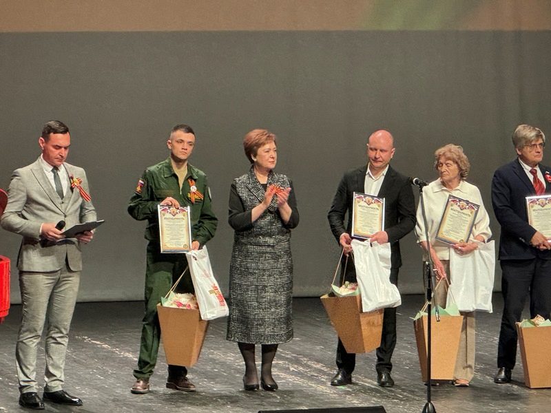 После награждений и поздравлений прошел замечательный концерт. Программа концерта включала как вокальные, так и танцевальные номера, которые гармонично сочетались с выступлениями ветеранов, которые поздравляли жителей района с экрана зала, и различными историческими справками с фото и видео рядом. Очень тепло и душевно провел музыкальную часть замечательный артист, певец Иван Дятлов. Он сам с огромным талантом и сердечным настроем исполнял песни военных лет, которые никого не оставили равнодушными. Зрительный зал и рукоплескал и подпевал, и вставал с мест.