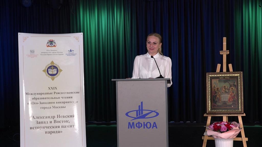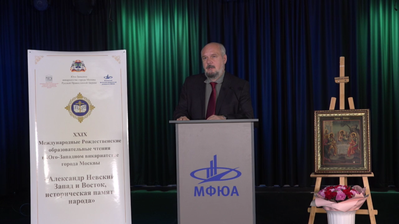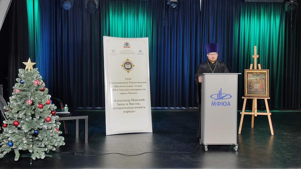 25 ноября по благословению Преосвященного Феофилакта, епископа Дмитровского, викария Святейшего Патриарха Московского и всея Руси, управляющего Юго-Западным викариатством, наместника Андреевского ставропигиального мужского монастыря г. Москвы при поддержке Московского финансового-юридического университета МФЮА и Префектуры ЮЗАО прошел Окружной этап XXIX Международных Рождественских образовательных чтений на тему: «Александр Невский: Запад и Восток, историческая память народа».
