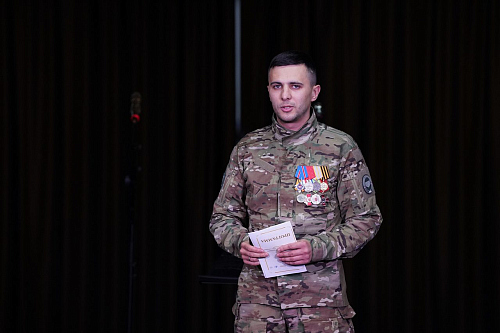 Далее выступил участник СВО и обороны Славянска, руководитель программного направления Центра военно-спортивной подготовки патриотического воспитания молодежи «Воин», автор книги «Война в 16», Андрей Савельев, который, с демонстрацией видеосюжетов рассказал о новых форматах работы в рамках военно-патриотического воспитания молодежи.