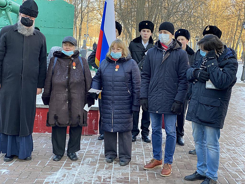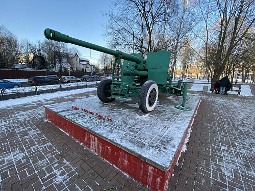 Мероприятие завершилось возложением цветов к памятнику - военной зенитной пушке.