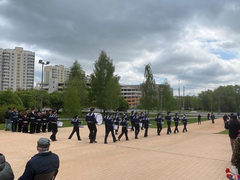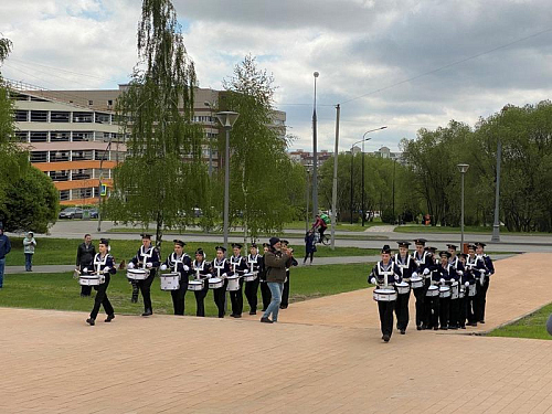 С воодушевлением все присутствующие встретили отряд барабанщиков, кадет-юнармейцев, учащихся Государственного бюджетного общеобразовательного учреждения города Москвы «Школа № 1883» под руководством полковника Зятчина Владимира Сергеевича, которые промаршировали по площади с барабанным боем, показывая мастерство и умение обращаться с музыкальными инструментами и строевой подготовки.