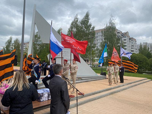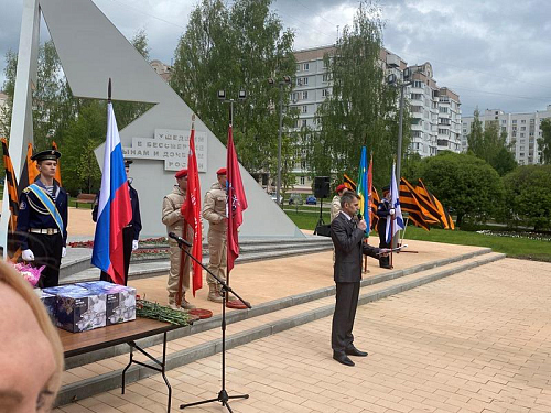 Открылась торжественная часть с внесения Государственного флага России, Знамени Победы, Флага города-героя Москвы, флага района Южное Бутово, флага Юнармии.