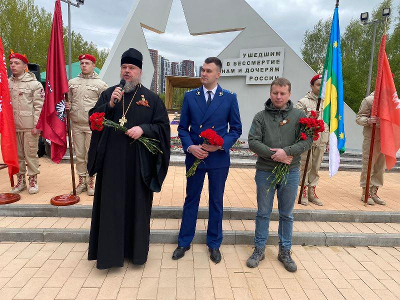 Для слов приветствия к подножию памятника были приглашены Глава Муниципального округа Южное Бутово Голубцов Павел Викторович, Зюзинский межрайонный прокурор г. Москвы Ткачев Дмитрий Игоревич и настоятель храма святого праведного воина Феодора Ушакова в Южном Бутове игумен Дамиан (Залетов).