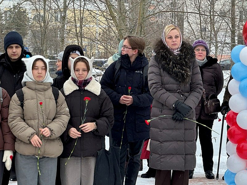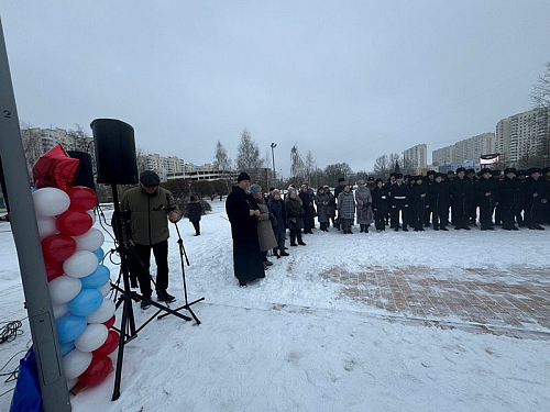 Перед людьми открывая памятное мероприятие выступил настоятель Патриаршего подворья игумен Дамиан (Залетов), который напомнил все и особенно ребятам о значении Дня Героя Отечества, о значении понятия героизма в разные времена и в разных культурах. И, конечно, тот великий образ Героя, который сложился в России. Образ Героя, который имел своим истоком память святого великомученика Георгия Победоносца, русская память которого чтится в этот день. Образ Героя, который впитал в себя подвиги воинов Российской империи, удостоенных главного военного ордена Георгия Победоносца, а потом солдатский боевой орден Славы и Звания Героя Советского Союза и Социалистического труда. Сейчас орден святого Георгия снова возрожден и вручается новым Героям, как и звание Героя России и Героя Труда. Черты этого образа Героя России: жертвенность, милость, стояние за истину и Правду Божию, поиск справедливости, прощение врагам....Особенно, конечно, это касается Защитников Москвы и нашего Советского государства в годы Великой Отечественной войны. К числу таких Защитников и Героев относятся и воины СВО, которые и сейчас сражаются против фашизма, за Россию. Они новые Герои и по праву носят знаки своего подвига. Но героизм нужен каждому, на каждом месте своего труда и призвания, в том числе и в звании школьника и тем более кадета.