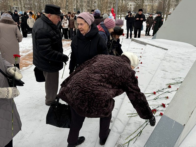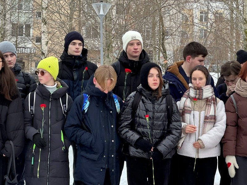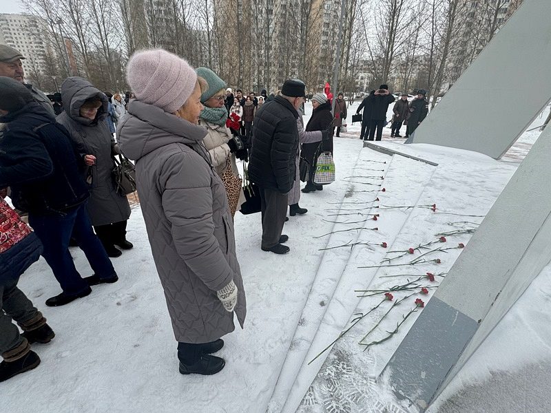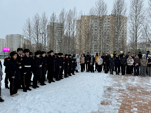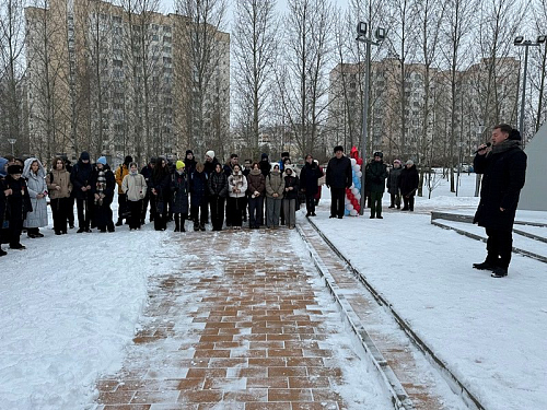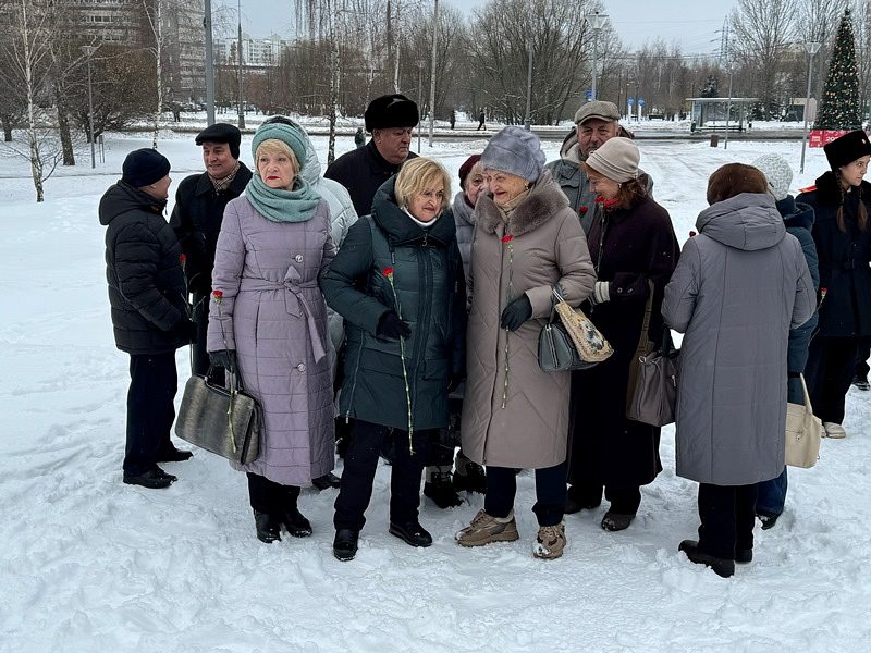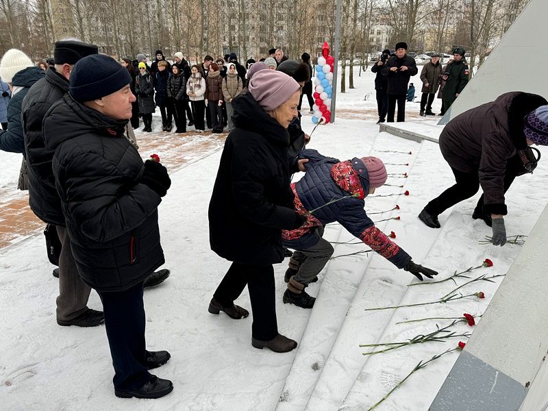 Около памятника выстроились кадеты и учащиеся нескольких школ района № 368,2009,1980,1981,1883,1492.