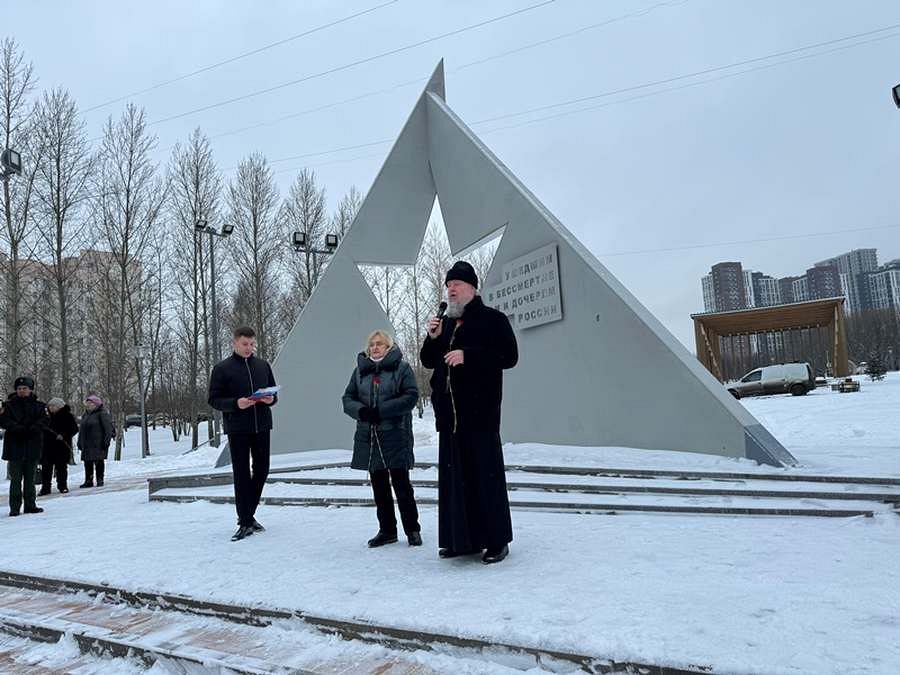 Для слов приветствия к подножию памятника были приглашены Председатель Совета ветеранов района Южное Бутово Никифорова Елена Вячеславовна и настоятель храма святого праведного воина Феодора Ушакова в Южном Бутове игумен Дамиан (Залетов).