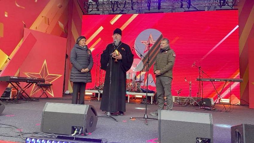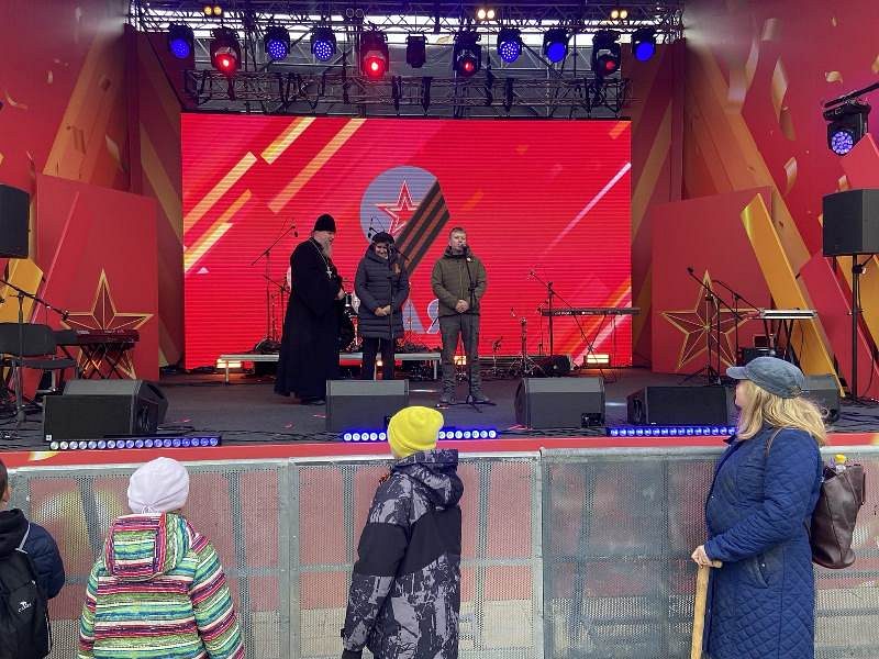 Для слов приветствия на сцену были приглашены депутат Московской городской Думы Гусева Людмила Ивановна, Глава Муниципального округа Южное Бутово Голубцов Павел Викторович и настоятель храма игумен Дамиан.