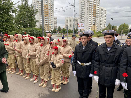 В мероприятии приняли участие многочисленные отряды кадетов и юнармейцев, учащихся школ района, которые пришли туда в форме, со знаменами и своими наставниками.