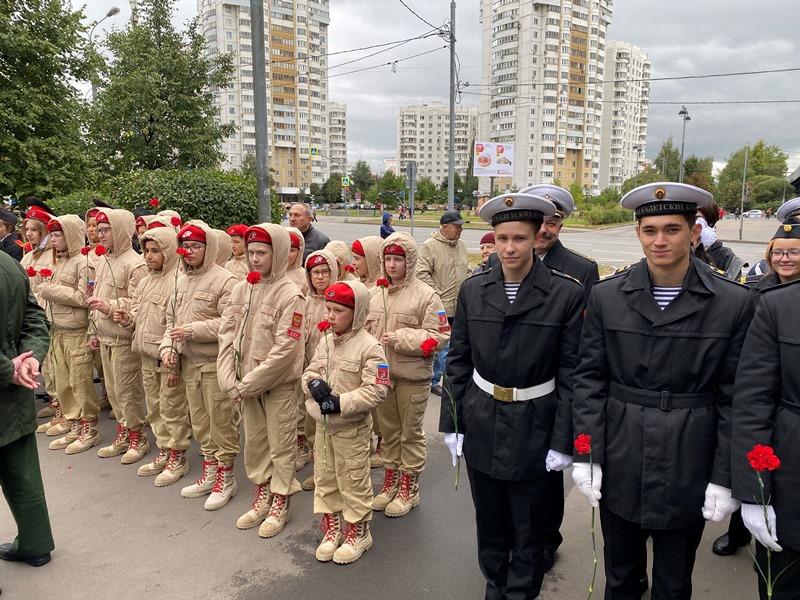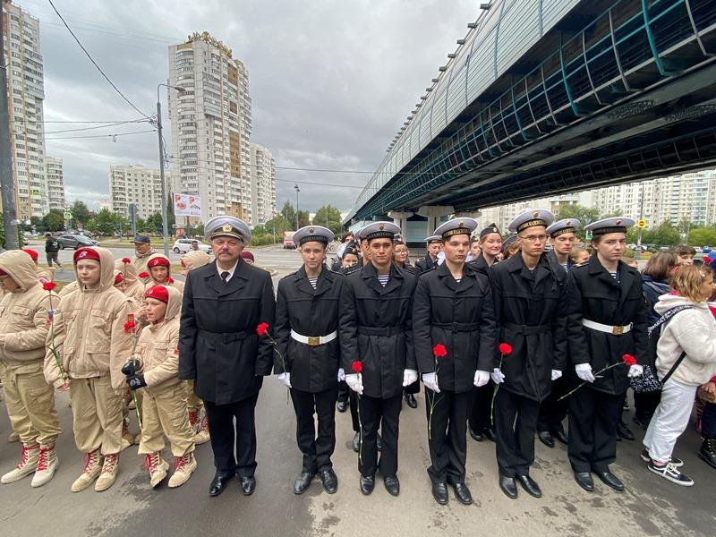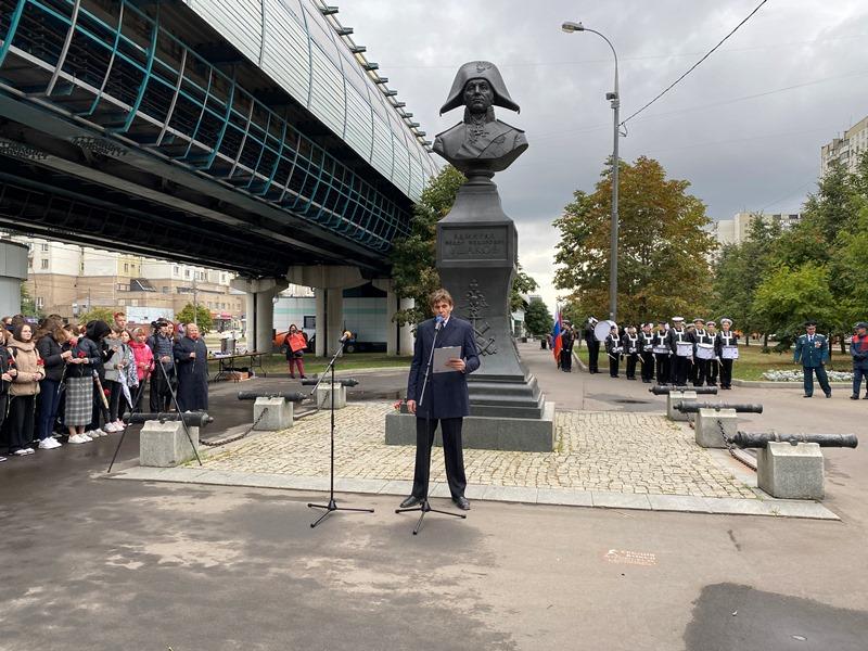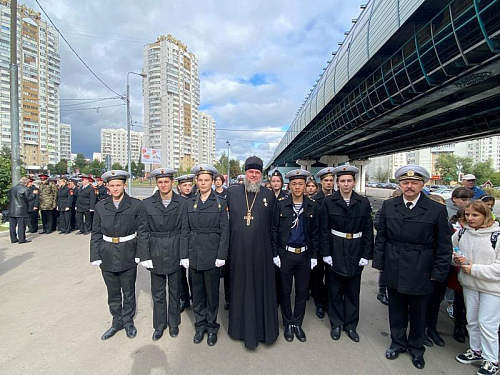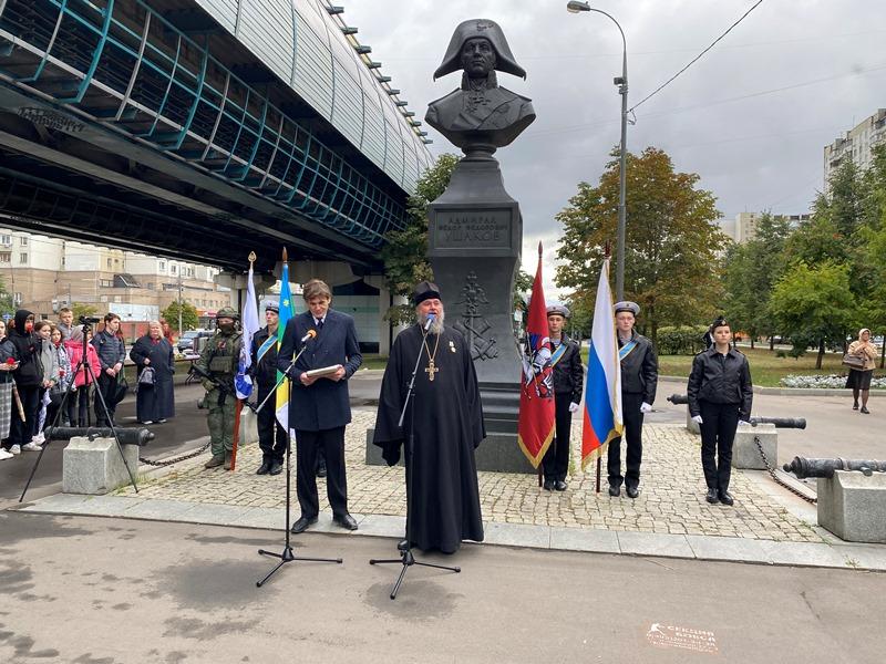 Торжественное построение прошло на площади у памятника-бюста непобедимого адмирала Флота Российского Федора Федоровича Ушакова у станции метро «Улица Скобелевская».