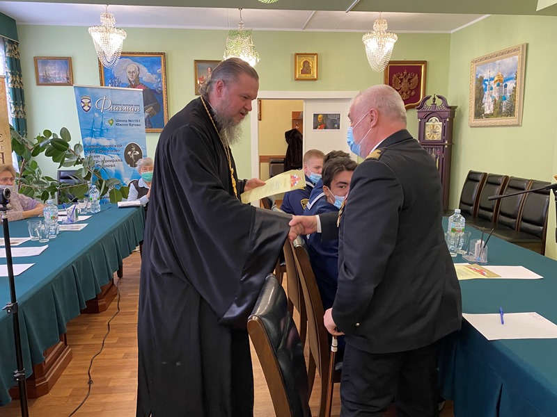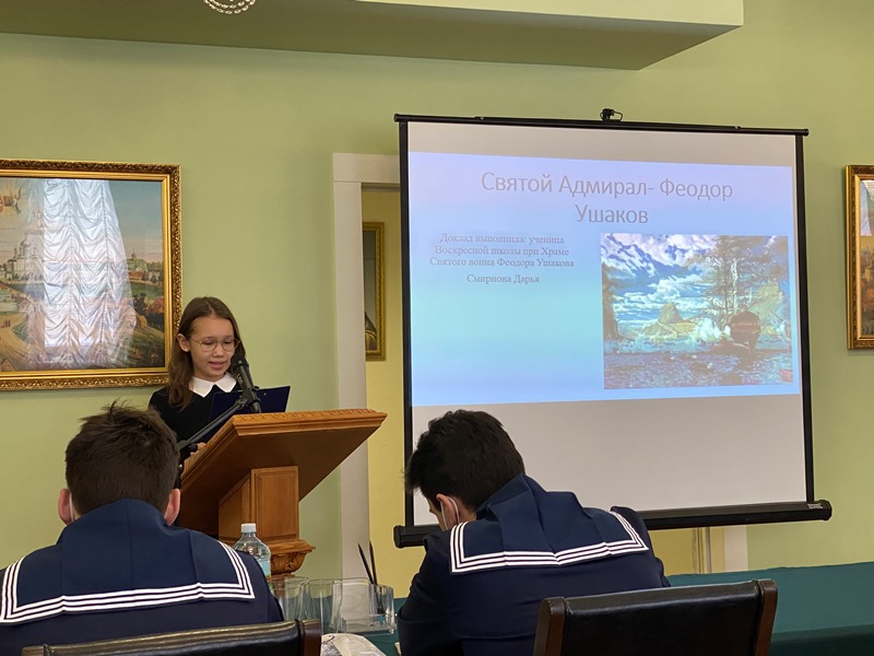 В традиционной конференции, прошедшей в доме причта храма святого праведного воина Феодора Ушакова в Южном Бутове, приняли участие воспитанники военно-морского клуба «Флагман» имени контр-адмирала В.Ф. Руднева (ГБОУ Школа № 1161), Музея боевой славы ВМФ имени Ушакова (ГБОУ Школа № 1883 «Бутово»), юнармейского отряда ГБОУ Школа № 1981, Воскресной школы и Навигацкого класса при храме Феодора Ушакова и курсанты колледжа Академии водного транспорта Российского университета транспорта.