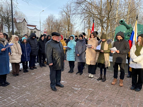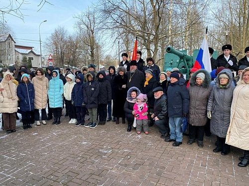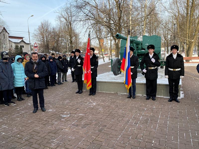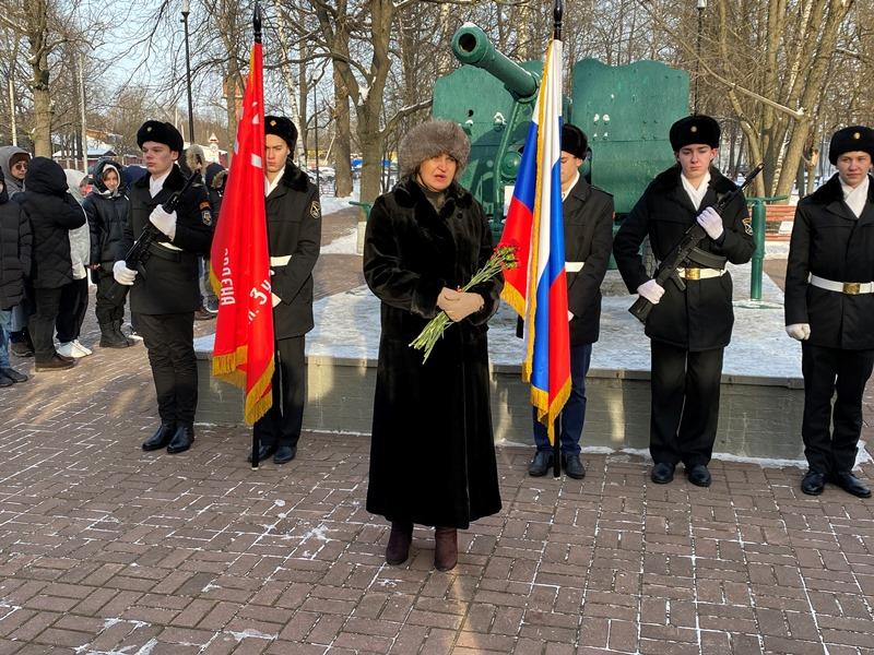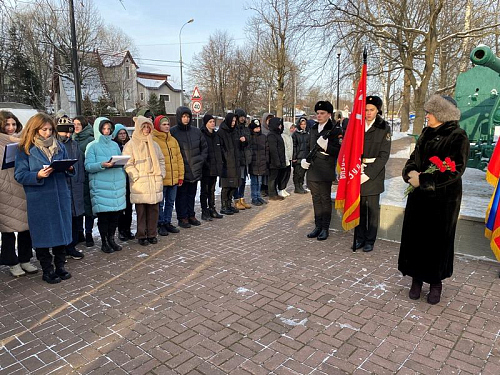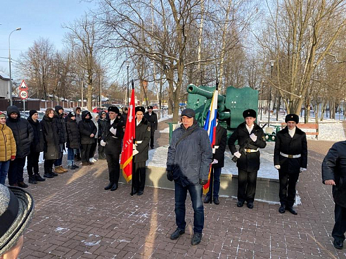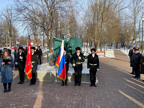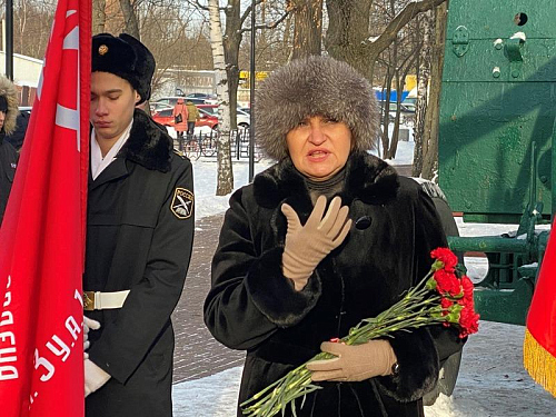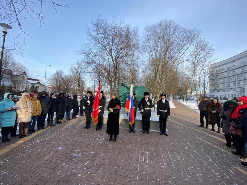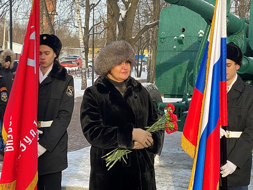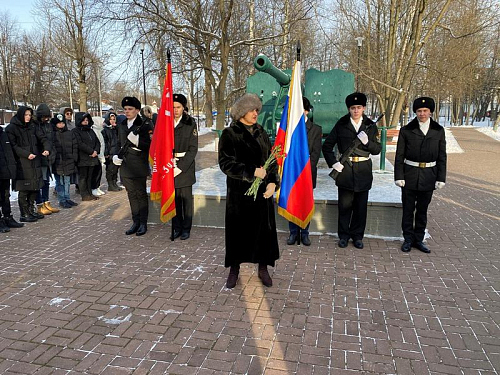 Мероприятие завершилось возложением цветов к памятнику - военной зенитной пушке.