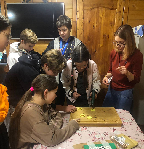 Все с интересом сыграли в тематическую игру, увидели греческий огонь и своими руками сделали копию византийской монеты из сургуча.