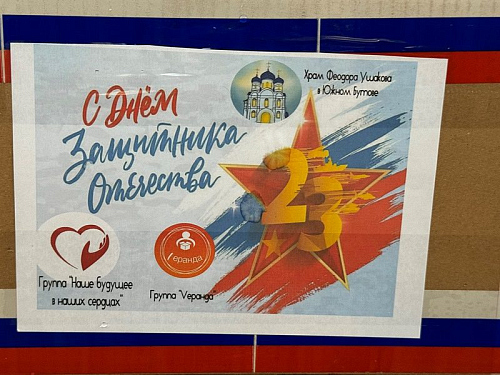 8 февраля 2025 года в храме святого праведного воина Феодора Ушакова в Южном Бутове были освящены посылки и флаги Российской Федерации для отправки на фронт Специальной военной операции для воинов по и их просьбе в благословение и духовную поддержку.