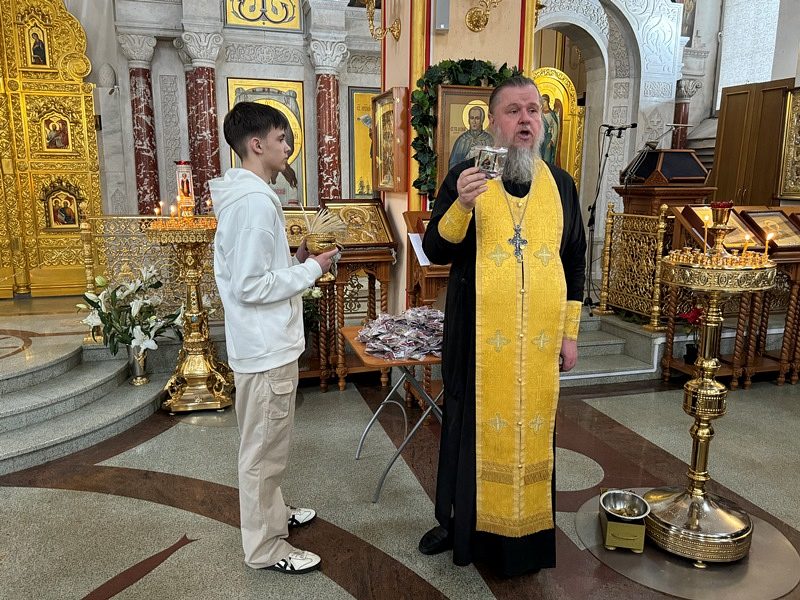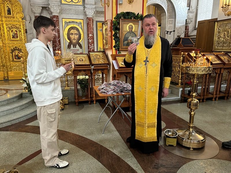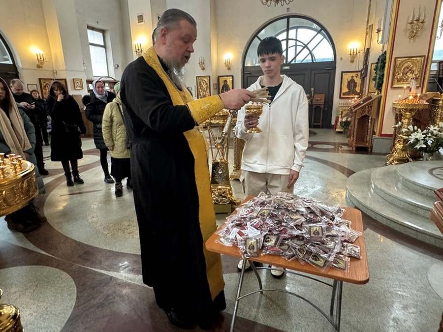 Посылку воинам совместно с храмом подготовили волонтеры района Южное Бутово. Настоятель окропил иконы Святого адмирала перед его храмовым образом святой водой и обратился к присутствующим с призывом молиться о наших воинах и оказывать им постоянную помощь и поддержку.