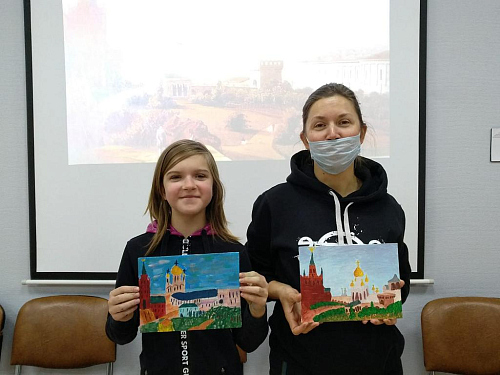 Затем Мария Вальдес провела мастер-класс по созданию картины акриловыми красками на тему:«Москва рубежа XVIII-XIX веков». Через произведение своих рисунков участники смогли окунуться в атмосферу той эпохи и воспроизвести на полотне образы, сцены из жизни и архитектуру.