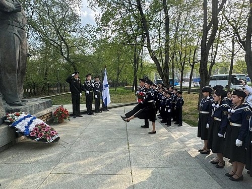 После посвящения в кадеты-ушаковцы возложили цветы к памятнику погибшим морякам подводной лодки "Курск"и почтили память погибших подводников минутой молчания. Капитан 2-го ранга Трошкин Николай Иванович рассказал об этой страшной трагедии и о своих погибших друзьях, и ребята ещё раз пообещали быть вечно достойными памяти своих предков.