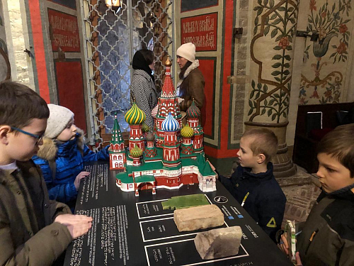 11 февраля 2023 года воспитанники Воскресной школы храма священномученика Василия, протоиерея Московского, в Конькове вместе со своими родителями и педагогами Юлией Викторовной Марковой и Светланой Юрьевной Ратиновой с экскурсией посетили одну из главных святынь города Москвы, символ православной Руси - собор Василия Блаженного на Красной площади.