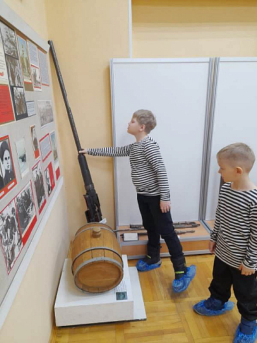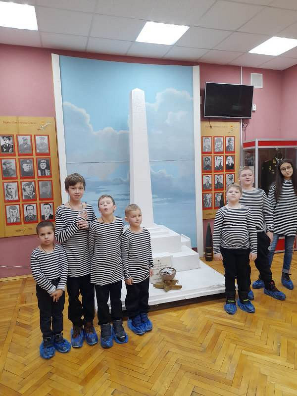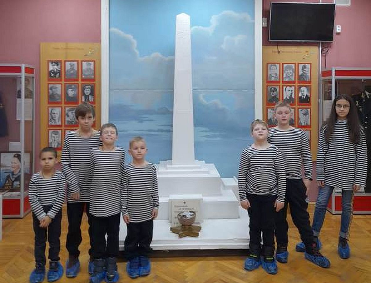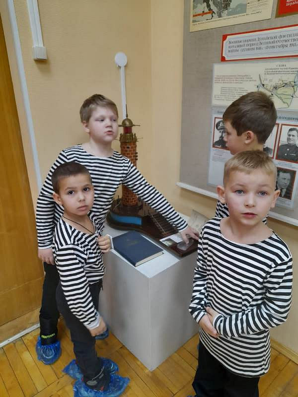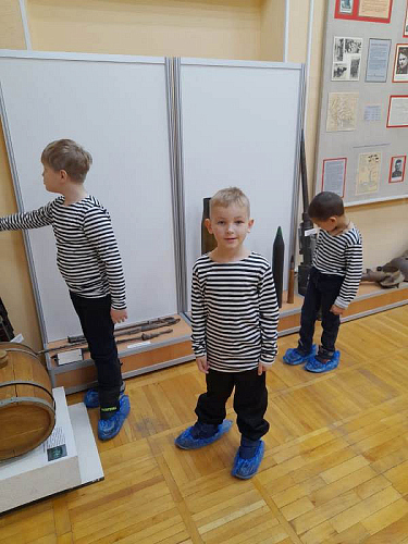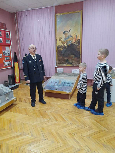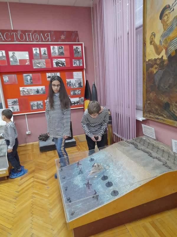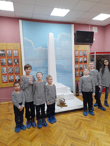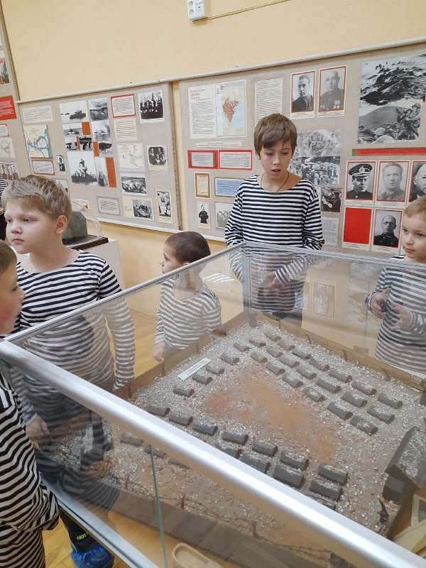 С рассказами об истории тельняшки, жизни и службе военных моряков, а также об экспозициях Музея по его залам детей провел член Совета ветеранов Черноморского флота капитан 1 ранга Александр Яковлев. Ребята могли не только послушать или посмотреть экспонаты музея, но и с интересом потрогать многие удивительные экспонаты, настоящие детали и механизмы морских судов.