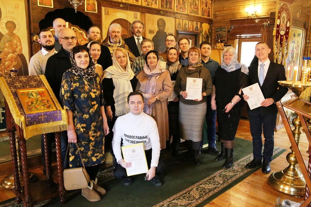 После Божественной литургии и Праздничного молебна в честь Торжества Православия выпускники 2-х годичного (2018-2020 гг.) учебного курса Викариатской школы выслушали поздравления настоятеля прихода протоиерея Романа Маркова и напутственные слова для их дальнейшей миссионерской работы во Славу Господа нашего Иисуса Христа и Православной Церкви. Свидетельства, подписанные Преосвященнейшим Феофилактом, Епископом Дмитровским, Управляющим викарием Юго-Западного викариатства города Москвы, получили 17 человек.