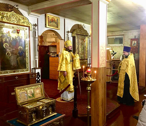 По окончании Всенощного бдения настоятель храма иерей Игорь Шаров от лица всех прихожан выразил признательность Владыке Алексию за посещение храма и архиерейское богослужение.
